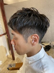 メンズパーマと言うと、最近はツイストスパイラルパーマ、波巻きパーマ、ツイストパーマ等ございますが、なかなか普段仕事をされているビジネスマンのお客様にはトライしにくいスタイルかもしれません。