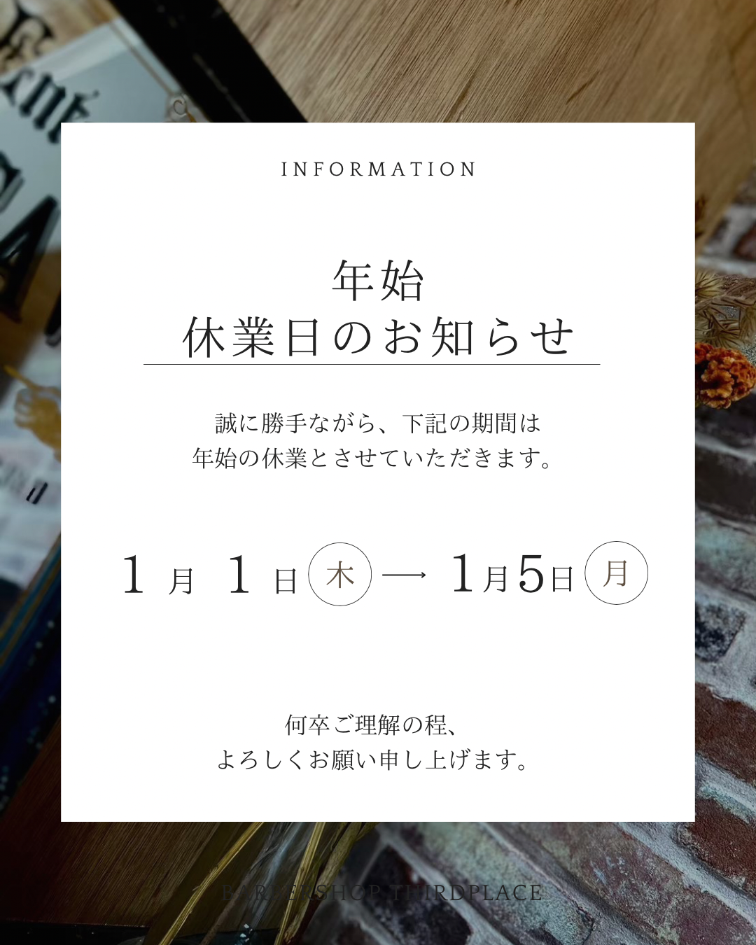 1月1日木曜日から1月5日月曜日までお休みさせて頂きます。