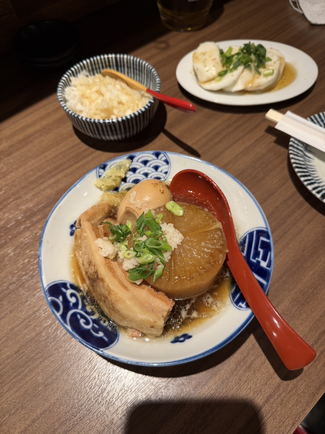 背脂と出汁がしっかり染み付いていて、お酒が最高に相性が良かったです。