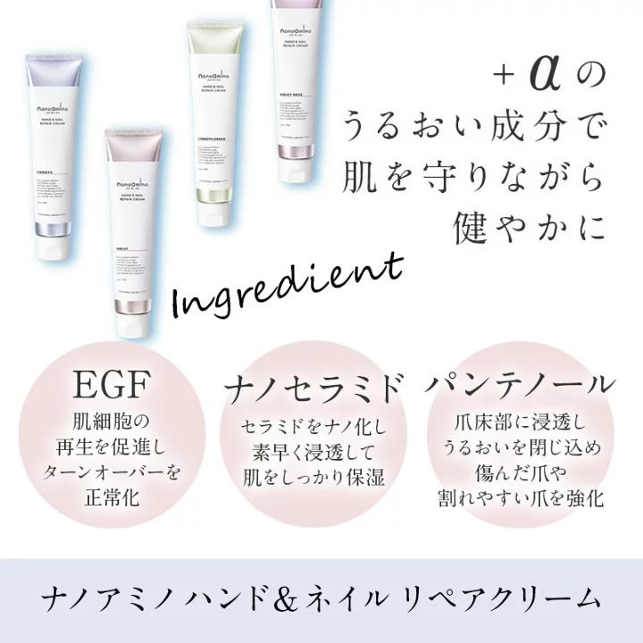 ナノアミノは 手肌+爪 の両方をケアできる珍しい処方。