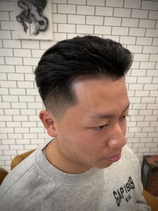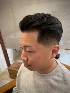 サイドとバックはフェードで引き締め、トップは流れを活かしたオールバック。