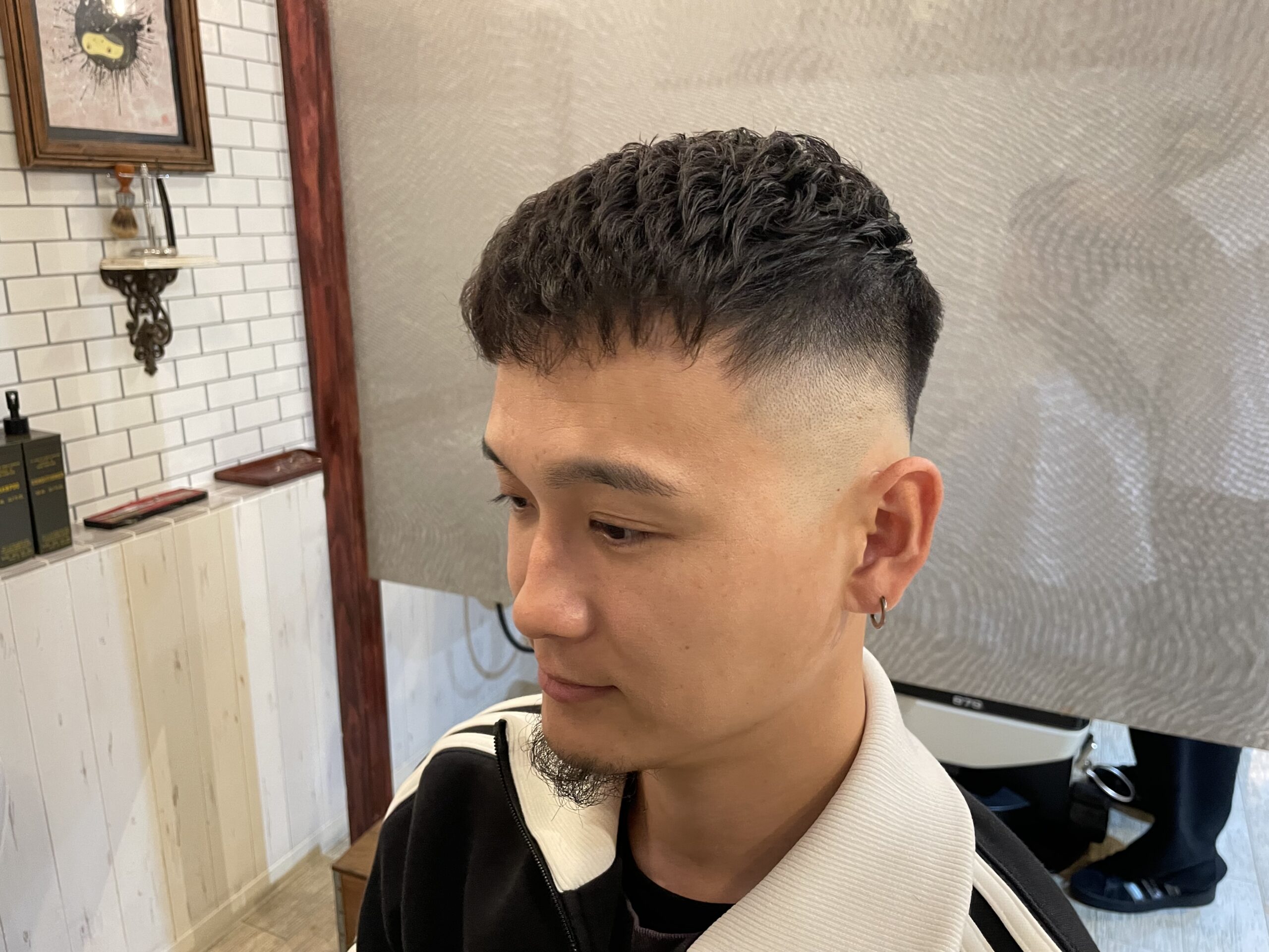 濡れパンは、クロップ・フェード・スキンフェードとの相性も抜群。清潔感がありながらも無骨さを残したスタイルなので、ビジネスシーンでも好印象を与えられます。「短髪でも雰囲気を変えたい」「パーマに挑戦してみたい」という方は、ぜひ一度体感してみてください。