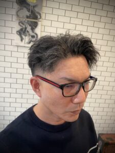 今回ご紹介するのは、裾はスキンフェードでスッキリし、トップは分けられる長さを残し、ツイストスパイラルパーマでボリュームと動きをプラスしたスタイルです。