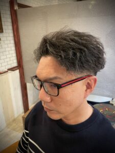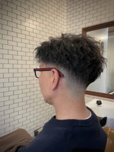 今回ご紹介するのは、裾はスキンフェードでスッキリし、トップは分けられる長さを残し、ツイストスパイラルパーマでボリュームと動きをプラスしたスタイルです。