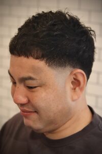 トップは短すぎず、癖毛を活かした長さ設定にすることで、無理に抑え込まないナチュラルな動きを演出。直毛の方はもちろん、癖毛でスタイリングが難しいと感じている方にもおすすめのクロップスタイルです。