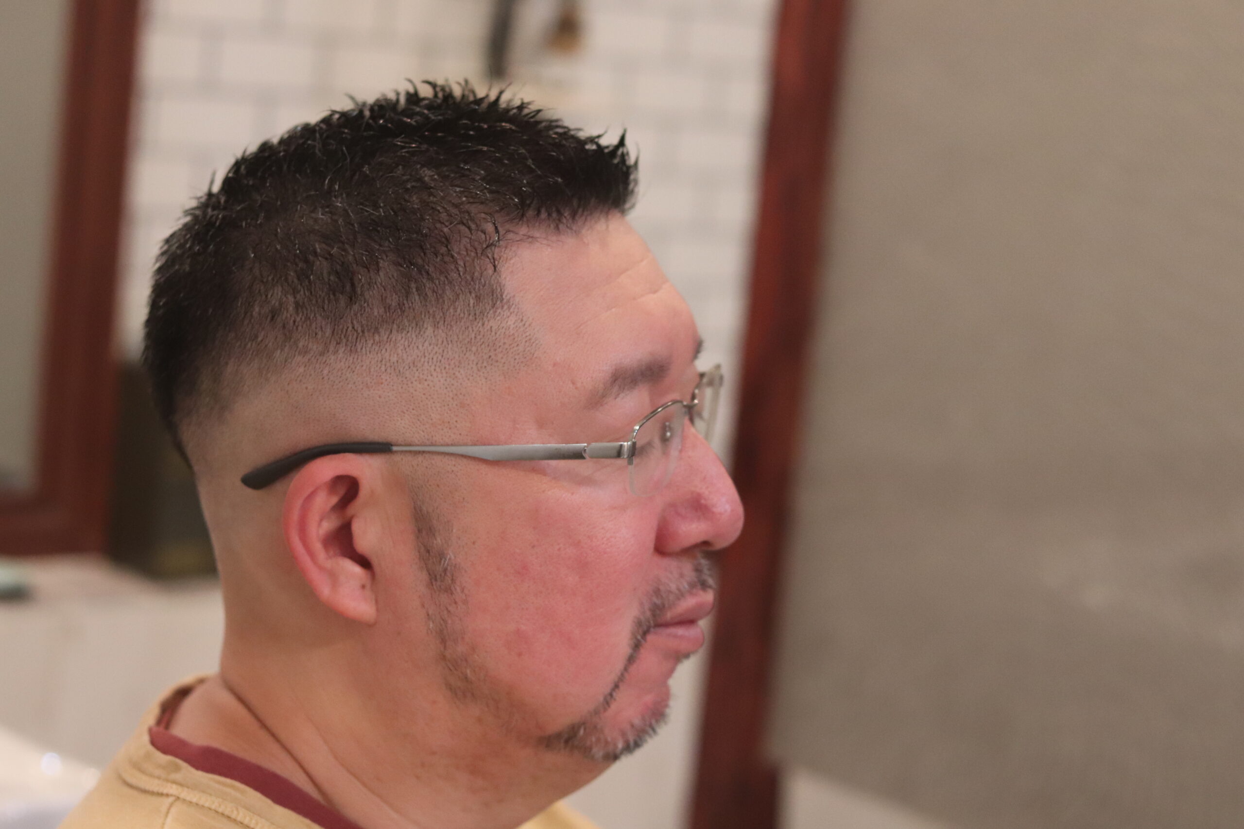 GIカットにフェードを組み合わせることで、より立体感が生まれ、バーバースタイルらしいシャープさが際立ちます。
