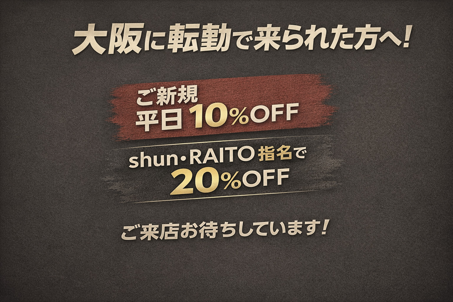 shun・RAITO指名の場合は全てのお客様対象でオールメニュー20%OFFとなっております。