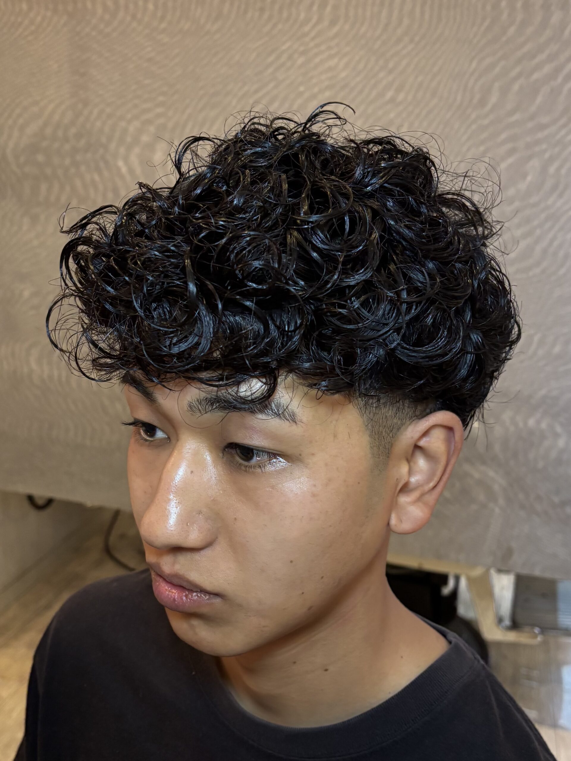 トップはくるくるにして、横は低めのフェードで刈り上げてイメージ的には海外風のスタイルを作らさせていただきました!