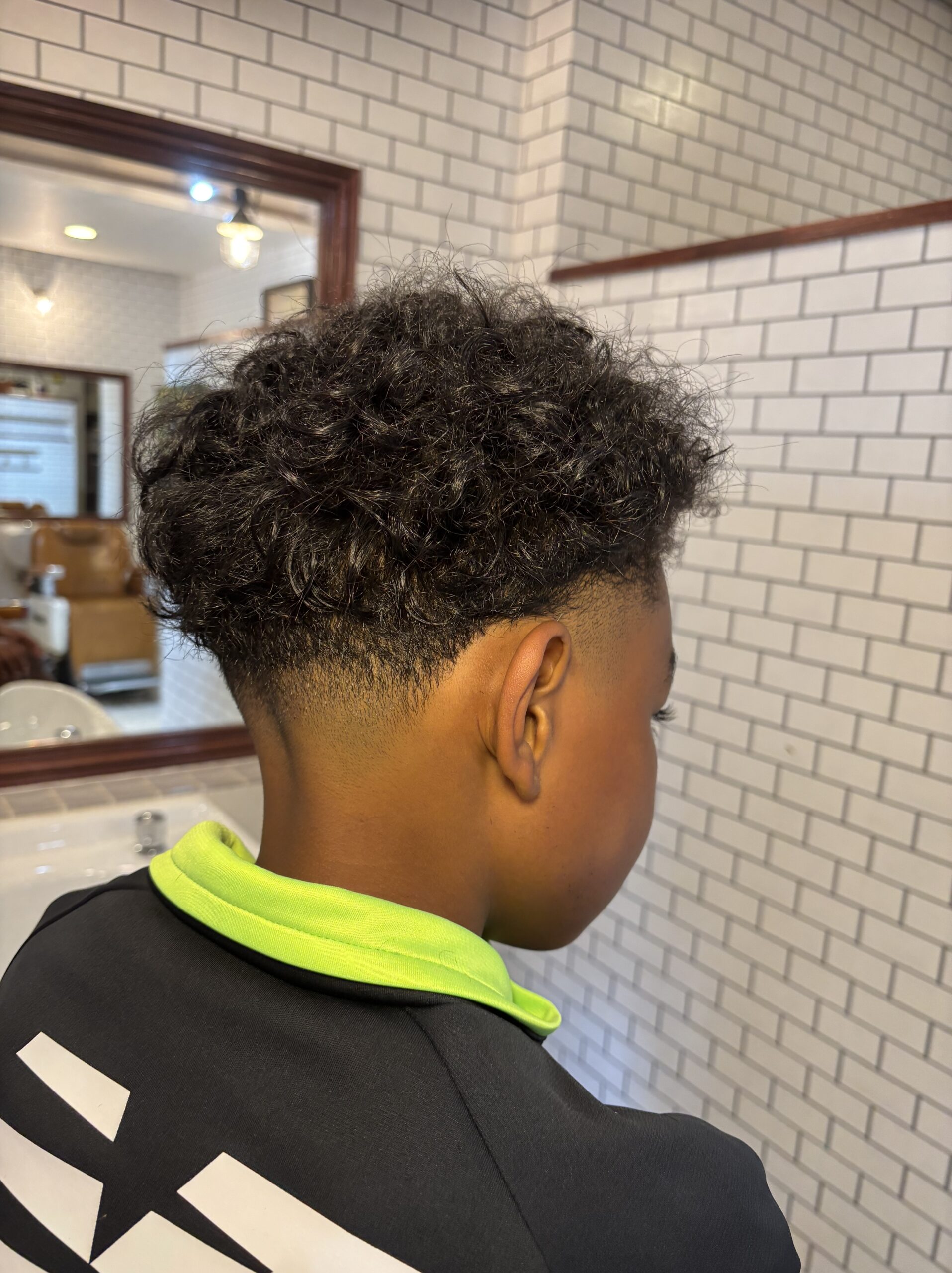 元々癖毛の髪型なのでそれを活かしつつ、横と後ろはフェードで仕上げました。