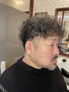 細かめのカールで全体に立体感を出しつつ、サイドはすっきり刈り上げることで清潔感と男らしさを両立。ラフに乾かすだけで形になるので、朝のセットもかなり楽になります^ ^